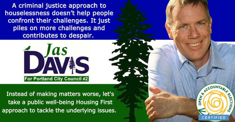 Focus on Housing First for the homeless using housing pods and transitional housing with needed services provided on-site.